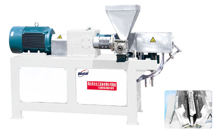 This singe screw extruder has a versatile and high performance kneading and dispersion system for manufacturing powder coating and other products. The kneader has a unique design which the spiral elements have three breaks within one screw pitch on the shaft ,on the counter part of the breaks , there are three lines of stationery pins in the liner , all these permit the screw to reciprocate while rotating , with each round of screw rotating movement , the shaft does on reciprocating movement .